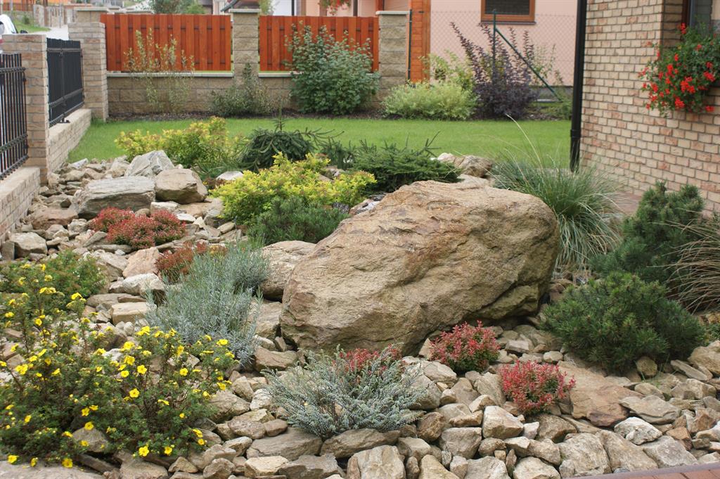 Podle projektu jsme kamennou zahradu realizovali včetně modřínových prvků jako zahradu na klíč.