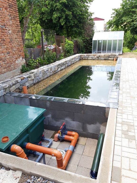 Výsledkem je plně funkční a esteticky působivé koupací jezírko, které poskytuje majitelům příjemné osvěžení a stává se dominantou zahrady.