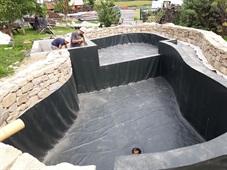 V zahradě rodinného domu jsme úspěšně realizovali stavbu menšího přírodního koupacího jezírka o objemu přibližně 35 m³. Projekt jsme převzali v plném rozsahu a zajistili jsme veškeré práce na klíč – od prvních terénních úprav až po finální osázení okolí zelení.