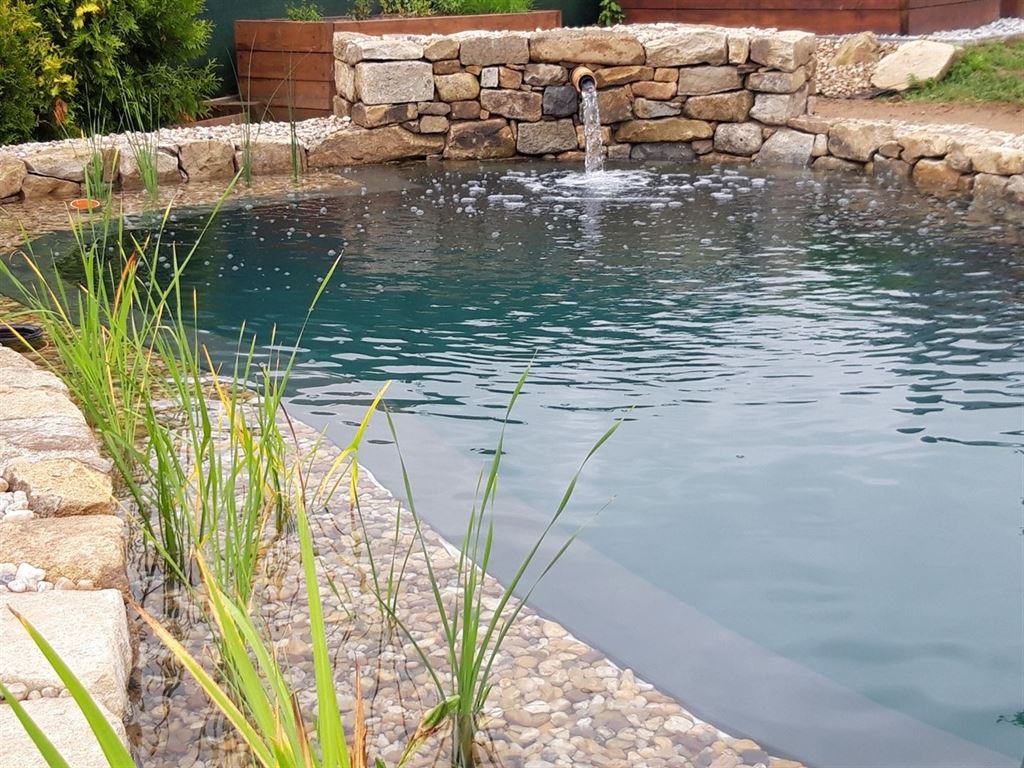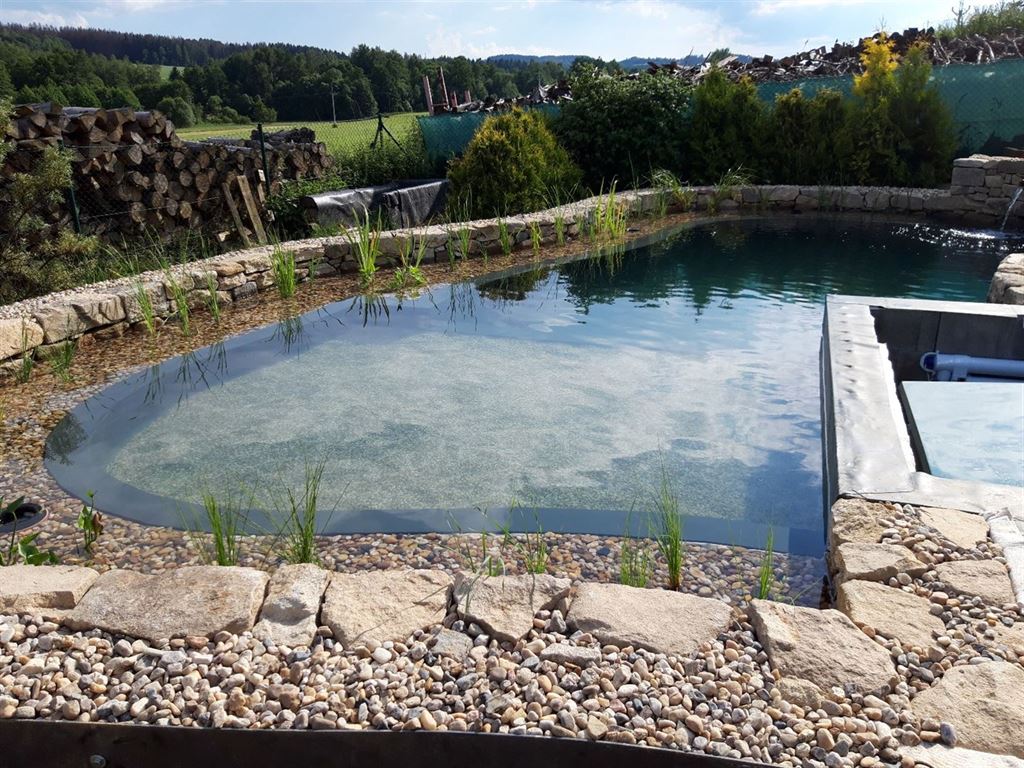 Výsledkem je funkční a esteticky působivé koupací jezírko, které se stalo příjemným místem pro relaxaci a osvěžení přímo na zahradě majitelů.