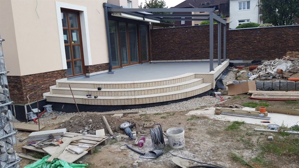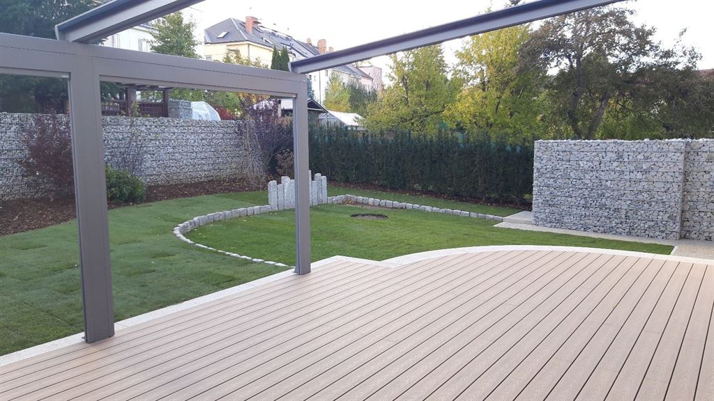Postavili jsme terasu, která slouží jako hlavní relaxační zóna zahrady. Terasa poskytuje pohodlný prostor pro posezení, grilování či odpočinek s rodinou.