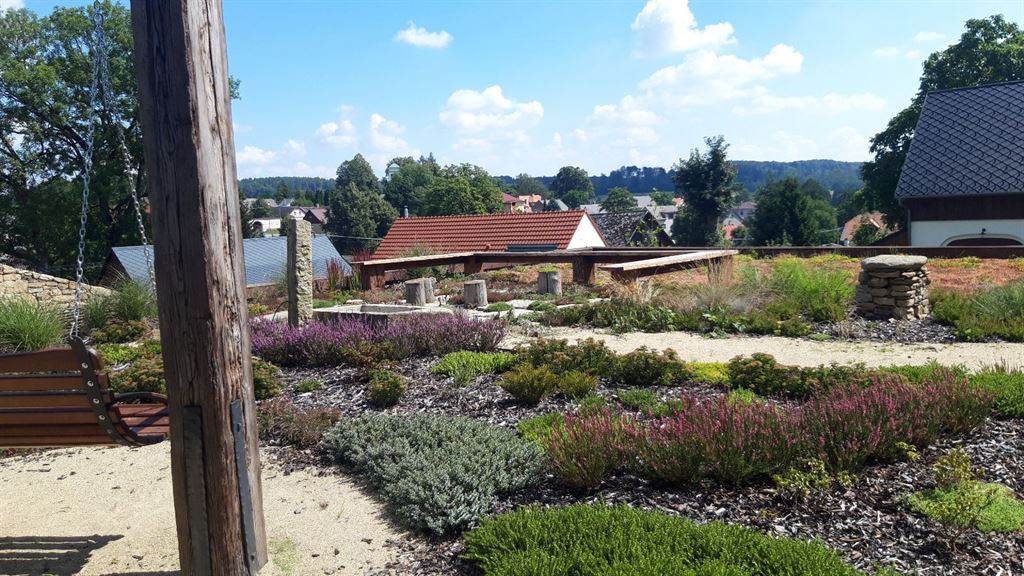 Součástí projektu byla také realizace moderní střešní zeleně, která představuje ekologické a estetické řešení pro zastřešené objekty v zahradě. Provedli jsme kompletní přípravu podkladu včetně hydroizolace, drenážní vrstvy a substrátu. Následně jsme osadili vhodné druhy rozchodníků, sukulentů a dalších nenáročných rostlin, které jsou přizpůsobeny extrémním podmínkám střešního prostředí. Zelená střecha nejen zkrášluje objekty, ale také zlepšuje tepelnou izolaci, zadržuje dešťovou vodu a podporuje biodiverzitu v zahradě.