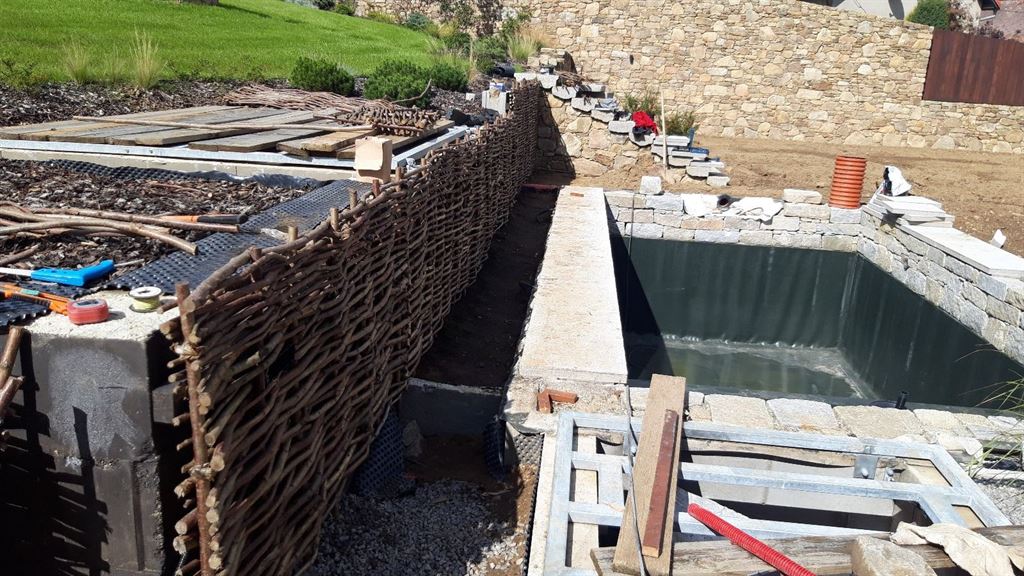 Centrálním prvkem celé realizace se stalo koupací jezírko, které jsme vybudovali včetně kompletní technologie pro biologické čištění vody. Jezírko bylo navrženo tak, aby se přirozeně začlenilo do terénu a vytvořilo příjemné místo pro relaxaci a osvěžení. Provedli jsme veškeré zemní práce, hydroizolaci, instalaci filtrační technologie a osazení vodních a pobřežních rostlin.